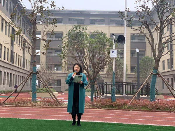 升旗儀式上,一首振奮人心的《義勇軍進(jìn)行曲》開啟了升旗儀式的序幕。