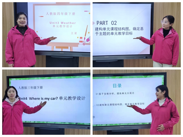 “單元疑彩課堂”教學(xué)設(shè)計分享環(huán)節(jié),老師們根據(jù)抽到的教材模塊和具體單元,現(xiàn)場完成教學(xué)設(shè)計,并逐一進(jìn)行分享交流。解讀國家課程標(biāo)準(zhǔn),對應(yīng)學(xué)科核心素養(yǎng),建構(gòu)課程結(jié)構(gòu),提出單元大觀念,制定學(xué)習(xí)目標(biāo)與評價標(biāo)準(zhǔn),統(tǒng)籌單元與課時學(xué)習(xí)任務(wù),創(chuàng)設(shè)真實生活情境,優(yōu)化作業(yè)設(shè)計,強化口語表達(dá)與書面習(xí)作的協(xié)同,體現(xiàn)“教—學(xué)—評”一致性,落實學(xué)生為本、學(xué)習(xí)高效,指向語言能力和思維品質(zhì)的培養(yǎng)。不同教師對于教學(xué)設(shè)計有不同的思考,形成不同的特色和亮點,極大激發(fā)了大家的研討興趣,在交流碰撞中衍生出新的智慧。