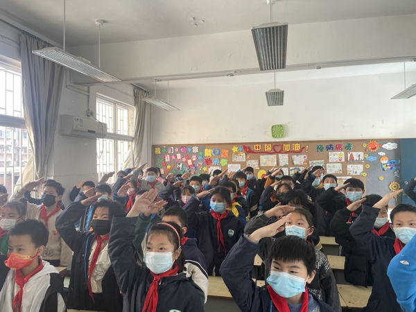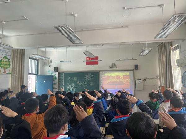 活動在莊嚴(yán)的升旗儀式中開始,隊員們表情肅穆,立正站好,高舉右手,凝視五星紅旗。活動中,各輔導(dǎo)員老師通過資料和圖片等形式向隊員們展示了清明節(jié)的由來、歷史淵源、傳統(tǒng)習(xí)俗等;隨后輔導(dǎo)員老師們給隊員們講述了革命故事,帶領(lǐng)隊員們觀看了革命題材影視片段,緬懷革命先烈豐功偉績。
