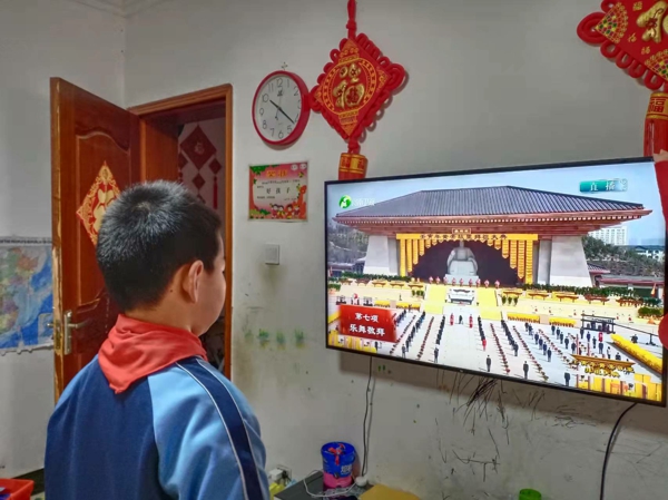 活動(dòng)中,隊(duì)員們?cè)缭绲鼐妥龊昧藴?zhǔn)備,跟著直播鏡頭,隊(duì)員們依次觀看了“盛世禮樂(lè)”“敬獻(xiàn)花籃”“凈手上香”“行施拜禮”“恭讀拜文”“高唱頌歌”“樂(lè)舞敬拜”“祈福中華”“天地人和”等九項(xiàng)儀程。
