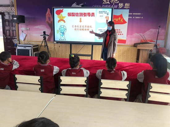 大隊(duì)輔導(dǎo)員丁老師分別對(duì)路隊(duì)監(jiān)察員、口罩監(jiān)察員、體溫監(jiān)察員、課間安全員、衛(wèi)生管理員、防疫宣傳員、核酸檢測(cè)引導(dǎo)員等崗位進(jìn)行了專項(xiàng)培訓(xùn)。
