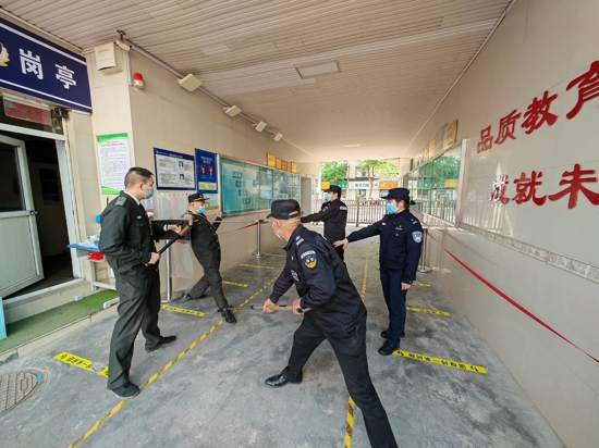 學校保安、巡防隊員聯(lián)合開展防暴恐演練