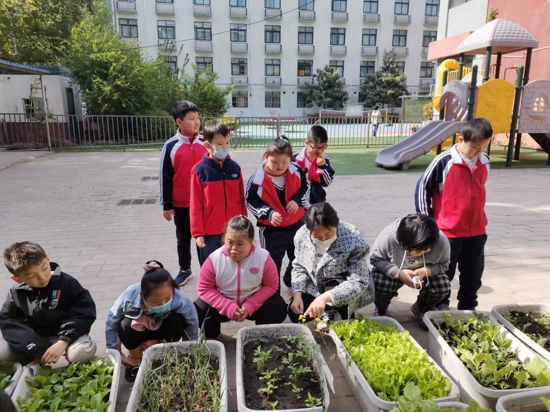 經(jīng)過老師和同學(xué)們的呵護(hù),蔬菜和植物都長(zhǎng)勢(shì)喜人,同學(xué)們收獲了勞動(dòng)的喜悅。