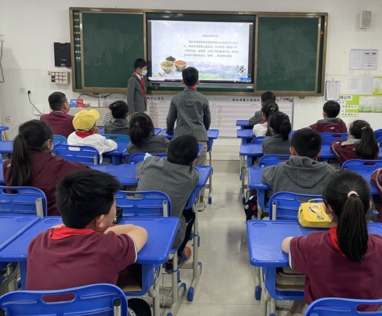 “谷雨谷雨,采茶對雨。”谷雨時(shí)節(jié)溫度適中,雨量充沛,茶樹芽葉肥碩柔軟,此時(shí)采摘的春茶滋味鮮活、香氣怡人。三四年級(jí)的“太陽花”們在主題隊(duì)會(huì)課上認(rèn)真聆聽班主任講解谷雨茶的來歷,學(xué)習(xí)中國茶文化起源、茶的功效、茶禮儀和品茶的傳統(tǒng)步驟。