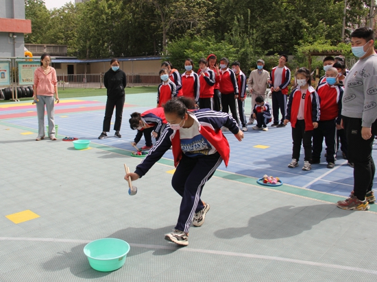 “沙包游戲”為不同年級(jí)的同學(xué)量身定做,考驗(yàn)了低年級(jí)同學(xué)的身體協(xié)調(diào)能力和高年級(jí)同學(xué)的精細(xì)動(dòng)作能力。“瞄準(zhǔn),發(fā)射……”小運(yùn)動(dòng)員們的精準(zhǔn)投射引起了陣陣歡呼。高年級(jí)運(yùn)動(dòng)員拿著鼓槌小心翼翼地把沙包從這個(gè)筐夾在另一個(gè)筐,動(dòng)作熟練流暢,大家屏氣凝神,看地津津有味。