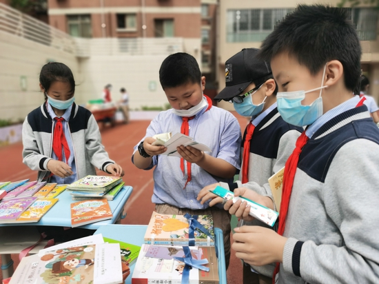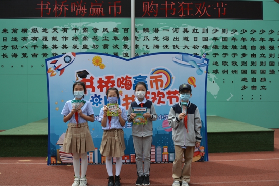 最引人矚目的要數(shù)孩子們手里拿的“校園閱讀幣”,10元、5元、2元、1元四種面值,這可是孩子們通過日常閱讀積分換取的,等同于人民幣在購書狂歡節(jié)上使用。不同面值的閱讀幣流通在各個圖書攤位上,加減乘除大家用,賠本買賣不可取,討價還價是常事,購得圖書有秘籍。同學(xué)們臉上洋溢著幸福的笑容,各個沉浸在購書狂歡節(jié)所帶來的妙趣中。沒有在校內(nèi)購得心儀書籍的,還可以在4月23日持校園閱讀幣到指定書店購買新書。