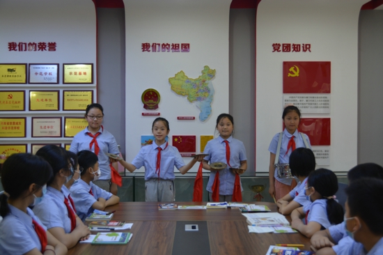 報告廳內(nèi),隊員們用課本劇形式喜迎黨的二十大,《為中華之崛起而讀書》正在有趣的上演。瞧,小演員們無比投入,用自己的肢體語言將人物角色表現(xiàn)得淋漓盡致。當(dāng)童年周恩來的形象重現(xiàn)舞臺上時,那種胸懷大志,立志報國的精神感染了在場每一位人,隊員們紛紛表示,要向童年周恩來學(xué)習(xí),為中華崛起而讀書。