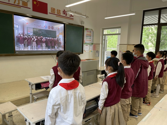 首先,全體師生莊嚴(yán)肅穆,齊聲高唱《義勇軍進(jìn)行曲》、《歌唱祖國》,同學(xué)們個個著裝整潔,佩戴著鮮艷的紅領(lǐng)巾,精神飽滿,神采奕奕,體現(xiàn)學(xué)生的良好風(fēng)采,表達(dá)了對祖國的熱愛之情。接著,黨員教師陳雨馨為大家分享本周團(tuán)結(jié)心向黨微課程《向警予的故事》,全體學(xué)生認(rèn)真聆聽,炙熱的眼神中透露出對革命先烈的崇拜敬仰之情,對愛國精神有了更深的理解。最后,二年級三班的同學(xué)為大家?guī)砹艘曨l短片《勞動最光榮》,同學(xué)們通過舞蹈表演表達(dá)了對勞動者的尊敬,每一位勞動者用勤勞的雙手和智慧,編織了這個五彩班斕的世界,創(chuàng)造了人類的文明。