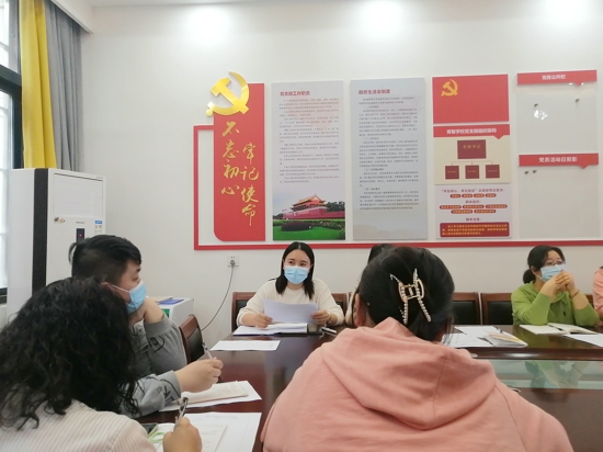 副主任劉夢帶領(lǐng)教師們學(xué)習(xí)文件