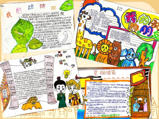 在地球的家園里,動物的種類繁多,這些大自然的生靈讓我們的家園變得更加生機勃勃,趣味盎然,孩子們對動物充滿了好奇、興趣與友善。結(jié)合第四單元語文要素,四年級語文組開展了“你好,我的動物朋友”主題活動。學(xué)生自創(chuàng)自寫自畫,設(shè)計出一張張設(shè)計精美的動物名片,一份份圖文并茂的特色小報,表現(xiàn)出對各種小動物的喜愛。通過這活動,幫助學(xué)生了解動物的千姿百態(tài),瑰麗多彩的神奇生活,感悟動物和人類生活息息相關(guān)的朋友關(guān)系,激發(fā)孩子愛護動物和保護動物的情感。