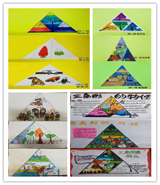 等腰三角形是四年級(jí)下冊(cè)第五單元所學(xué)的內(nèi)容之一,學(xué)生利用A4紙根據(jù)等腰三角形的特征,發(fā)散思維將等腰三角形又分成不同種類(lèi)的三角形,并以繪畫(huà)的形式把三角形進(jìn)行裝扮,通過(guò)學(xué)生們自定主題、繪畫(huà),將等腰三角形裝扮的更加美觀!四年級(jí)的“學(xué)子們”們積極參與活動(dòng),每個(gè)人都變身小小設(shè)計(jì)師,發(fā)揮自己充分的想象,分別將等腰三角形裝扮成自己喜歡的樣子,大家一起來(lái)欣賞我們的作品吧!