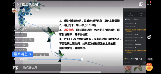 家長會上,各班班主任首先結(jié)合目前鄭州疫情的嚴(yán)峻形勢,要求各位家長一定要引起重視,并且提醒大家要堅持每日健康打卡,遵守各項防控規(guī)定,積極配合屬地社區(qū)和學(xué)校做好疫情聯(lián)防聯(lián)控工作,近期盡量居家不外出。堅持講衛(wèi)生、勤洗手、常通風(fēng)、少聚集。其次,各班班主任對接下來的線上教學(xué)進行了詳細(xì)安排,對在學(xué)習(xí)過程中可能出現(xiàn)的問題,向?qū)W生和家長提出了合理化的建議,希望家長們?yōu)楹⒆犹峁┌察o的上課環(huán)境,做好后勤配合工作,切實擔(dān)負(fù)起學(xué)生的監(jiān)管職責(zé),指導(dǎo)和督促學(xué)生按照學(xué)校作息時間按時參加學(xué)習(xí),按照授課教師的要求完成各科作業(yè),并提交教師進行批閱。最后,班主任提出,家校之間要相互理解、尊重、信任和配合,齊心協(xié)力促進孩子的學(xué)習(xí)和成長。