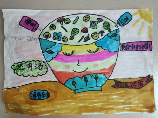 緊接著,王老師運用繪畫藝術(shù)心理輔導(dǎo)技能,使用貼近學(xué)生生活的方法,讓學(xué)生創(chuàng)作一碗屬于自己的情緒湯。通過寫湯的說明書梳理情緒,添加新的材料等步驟,使學(xué)生學(xué)會接納和轉(zhuǎn)化這些情緒。課程結(jié)束后,學(xué)生們通過圖片和視頻的方式在群里分享作品,分享自己課程學(xué)習的感受。“我通過畫畫表達了自己的情緒,很有意思,我也非常開心”。一二班許夢閩在群中分享道。