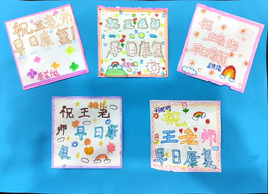 王老師的病情也牽動(dòng)著學(xué)生們的心。下課后,不少學(xué)生自發(fā)攙扶王老師走路,還制作帶有祝福語的卡片送給老師。