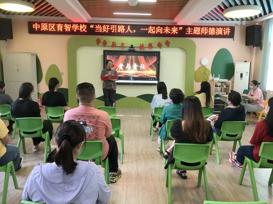 中新河南網(wǎng)5月25日電(吳勇強)為進一步凝聚師德正能量,強化師德師風建設,激發(fā)教師滿懷教書育人、啟智求真的教育理想,落實立德樹人根本任務,5月24日下午,中原區(qū)育智學校開展了“當好引路人,一起向未來”主題演講活動。