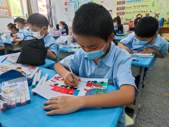測(cè)評(píng)在各任課老師的監(jiān)督下有序開展。學(xué)生們聽完考前注意事項(xiàng),認(rèn)真審題,個(gè)個(gè)自信地拿起畫筆,起稿作畫,一幅幅生動(dòng)的作品誕生了。該校美術(shù)教師楊光表示:美術(shù)能力檢測(cè)既能檢驗(yàn)老師的日常美育教學(xué)質(zhì)量,又能考量學(xué)生的繪畫能力。“手捧一張張靈動(dòng)的畫,可以感知它的分量,這是最珍貴的藝術(shù)品。天馬行空的想象,會(huì)讓人忍不住驚嘆童真世界的美妙。”李俊杰老師也說(shuō)道。