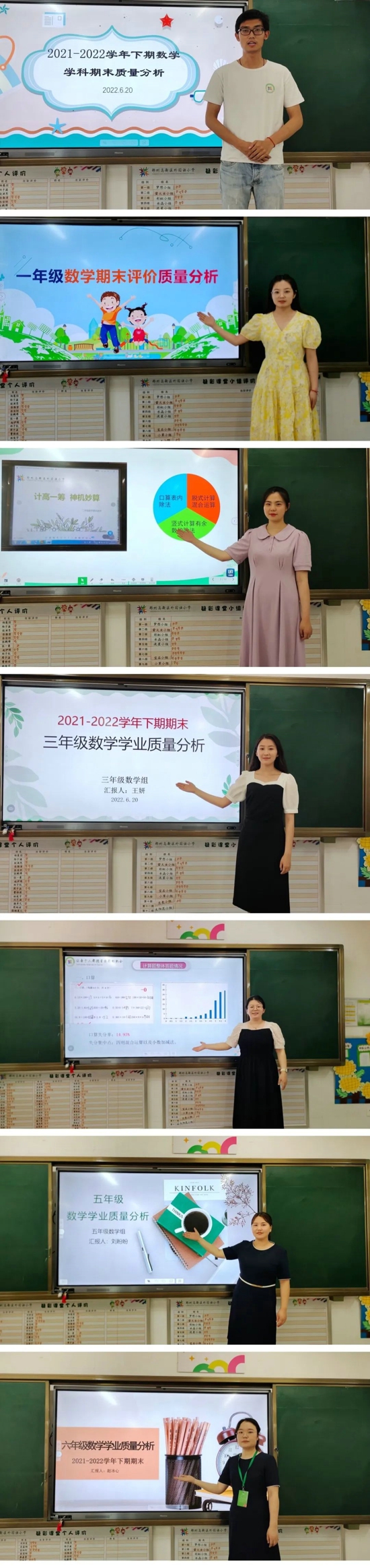 數(shù)學(xué)組由胡子雨老師主持本次分析會,一年級劉艷鴿老師、二年級李卓凡老師結(jié)合本學(xué)期低年級的闖關(guān)測評活動進行了經(jīng)驗分享,她們著重于學(xué)生綜合素能的發(fā)展進行各模塊的梳理,總結(jié)了經(jīng)驗,也提出了可以進一步完善的新措施;三年級王妍老師、四年級劉敏潔老師通過把評價中的典型題目、重要觀測點與日常教學(xué)內(nèi)容相結(jié)合,進行逆向追問、尋根溯源,結(jié)合“2022版新課程標(biāo)準”,為中段數(shù)學(xué)教學(xué)提出具體有效的指導(dǎo)方案,為進一步提升教學(xué)品質(zhì)推廣新策略、新路徑;五年級劉盼盼老師、六年級趙冰心老師立足實際,通過問題情境的創(chuàng)設(shè)、任務(wù)的驅(qū)動、重難點的突破,以及學(xué)生良好學(xué)習(xí)習(xí)慣的培養(yǎng),進行了深入地分析,就高段學(xué)生與初中學(xué)習(xí)方法的銜接做了具體的闡述,讓人深受啟發(fā)。