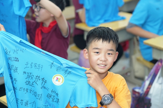 石榴果們最后一次在班主任老師的帶領(lǐng)下,走過長(zhǎng)長(zhǎng)的紅毯,展開六年的童年畫卷,見證自己成長(zhǎng)的足跡。他們換上了班級(jí)特制T恤衫,在班主任的帶領(lǐng)下,簽名留念。大家相互約定,無論未來走向多高多遠(yuǎn),大家的心始終在一起!
