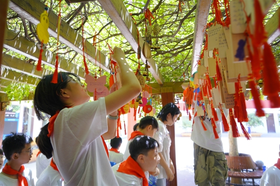 在第三篇章“向未來”環(huán)節(jié)中,校領(lǐng)導(dǎo)為六年級(jí)的畢業(yè)生頒發(fā)了畢業(yè)證,同時(shí)也把印有校徽標(biāo)志以及寫有班主任老師殷切祝福語的紀(jì)念品送給了每一個(gè)孩子。“請(qǐng)母校相信,我們一定會(huì)為您爭光,請(qǐng)恩師放心,我們一定會(huì)成為祖國棟梁……”同學(xué)們鏗鏘有力的誓言也表達(dá)了他們的決心和勇氣。同時(shí),在歡樂愉快的氛圍中,孩子們也將精心準(zhǔn)備的歌舞節(jié)目進(jìn)行了展示,展現(xiàn)了新時(shí)代好少年昂揚(yáng)向上的青春風(fēng)采。最后,同學(xué)們把寄托著對(duì)母校最美好祝福的心愿牌掛在了紫藤樹下,也將帶著母校最美好的祝福再次出發(fā)。