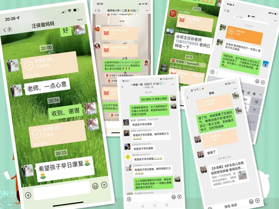在捐款活動中,該校黨支部書記魏志英號召全體師生為李珂馨同學(xué)捐款。她希望大家能夠發(fā)揚“一方有難,八方支援”的精神,獻(xiàn)出自己的愛心,一起幫助珂馨同學(xué)渡過難關(guān)。在學(xué)校的倡議下,全校師生及家長紛紛慷慨解囊,奉獻(xiàn)愛心。此次師生及家長線上線下共募捐愛心款4萬余元。該校校長王瑩、黨支部書記魏志英、大隊輔導(dǎo)員王曉杰以及班主任馮會平老師代表學(xué)校看望了珂馨同學(xué)并第一時間將愛心捐款送到患病學(xué)生父母手中,也送上了全校師生的祝福。“珂馨同學(xué)在做第一次腦積水手術(shù)后還在夢中背唐詩、敬隊禮......沒想到這么優(yōu)秀的孩子會遭此厄運,希望她能夠快點好起來。”班主任馮會平老師惋惜心痛地說道。