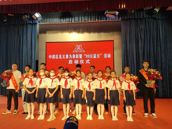 中原區(qū)百花藝術(shù)小學(xué)少先隊(duì)員代表參加中原區(qū)見義勇為表彰活動(dòng)