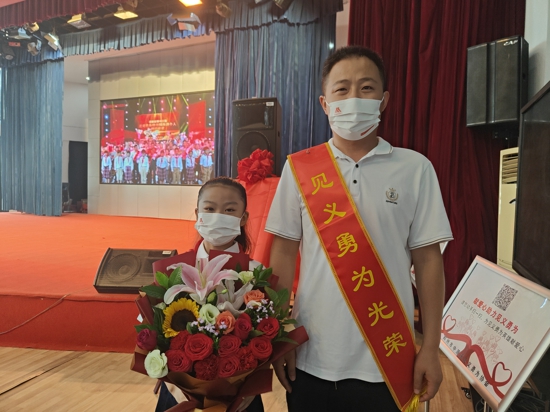 見義勇為受表彰人員與少先隊(duì)員代表親切交流