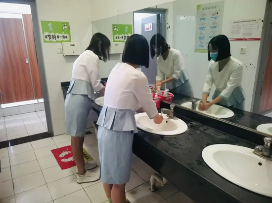 學校實行分年級分學段錯峰進行下課。班主任老師時刻提醒學生,課間不聚集、不隨意摘下口罩,分小組上廁所,保持安全距離,如廁后及時洗手消毒。