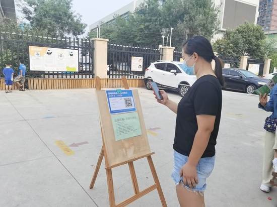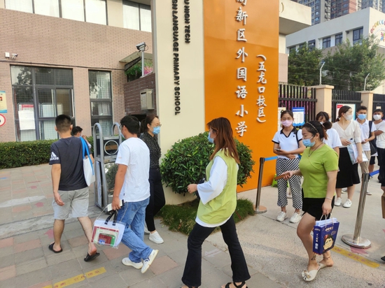 8點整,在引導(dǎo)老師的指引下,家長們出示健康碼、行程碼,并測溫,有序進(jìn)入校園等候區(qū)。“為了減少人員聚集,我們把片區(qū)內(nèi)的家長分成組,在學(xué)校的室內(nèi)場館為家長發(fā)放報名編號,按編號入場,并且只能由一位監(jiān)護(hù)人進(jìn)入校園報名登記。”五龍口校區(qū)教務(wù)副主任楊瑞娟介紹。
