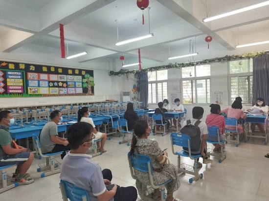 教師引導(dǎo)家長分組進(jìn)入審核組