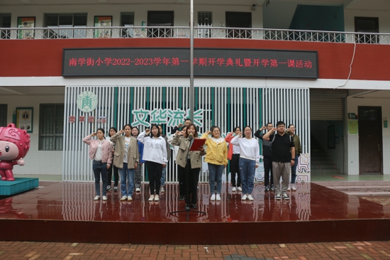 “我將努力以實際行動,踐行立美教育,作善美榜樣,感染善美心靈,讓美好教育落地生根,讓每個孩子向美而行,生生不息。”最后,全體教師在國旗下莊嚴宣誓,重溫南學街小學教師誓言,立志爭做新時代的“四有”好教師。