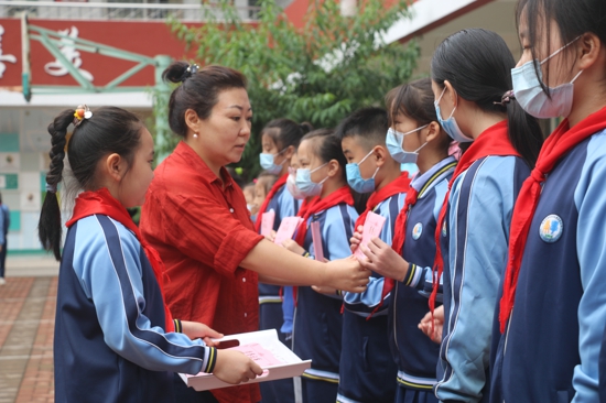 儀式現(xiàn)場,該校副校長遆亞娜也為獲得暑期實踐活動標兵和優(yōu)秀作業(yè)標兵的少先隊員頒發(fā)了榮譽證書并勉勵全體隊員向他們學習,讓優(yōu)秀成為一種習慣。