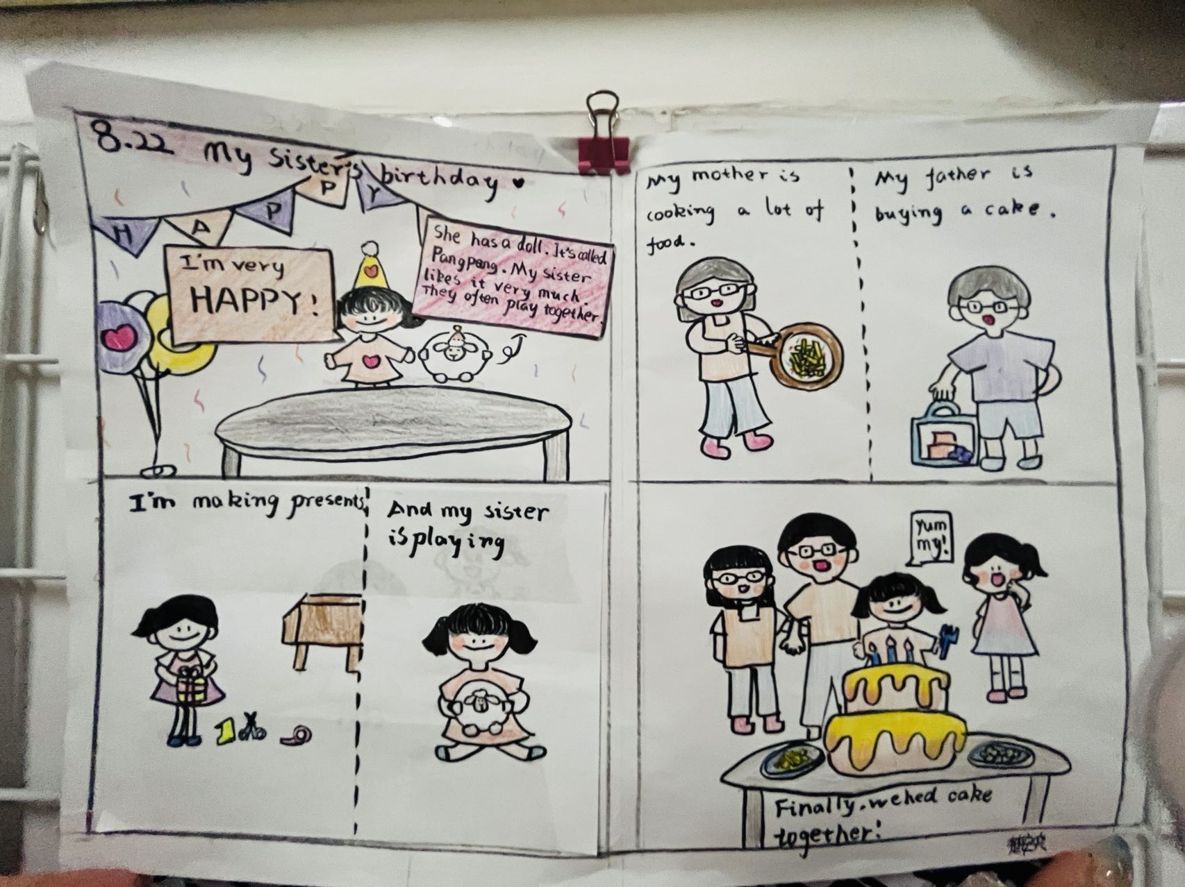 孩子們通過(guò)制作英語(yǔ)書(shū)、用英語(yǔ)記錄一天、英語(yǔ)時(shí)裝展等極大提高了孩子們學(xué)英語(yǔ)、用英語(yǔ)的興趣,孩子們的英語(yǔ)表達(dá)與應(yīng)用能力也得到了很大的提升。