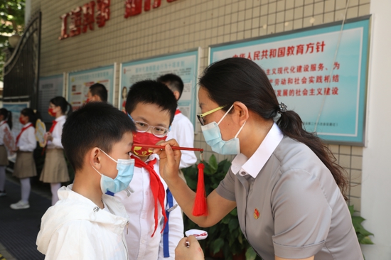 中新網(wǎng)河南9月3日電(吳勇強(qiáng) 趙文莉)2022年9月1日上午,金水區(qū)工人第一新村小學(xué)迎來了一批新的小可愛。他們稚嫩的面龐上滿是驚喜,靈動(dòng)的眼睛充滿好奇,蹦跳的步伐盡是欣喜!在高年級(jí)哥哥姐姐們的引領(lǐng)下,大手牽小手,個(gè)個(gè)昂首挺胸,神采奕奕,伴著歡快的音樂,邁著希望的步伐走上紅毯,穿過色彩繽紛的“啟智門”,步入了知識(shí)的殿堂。