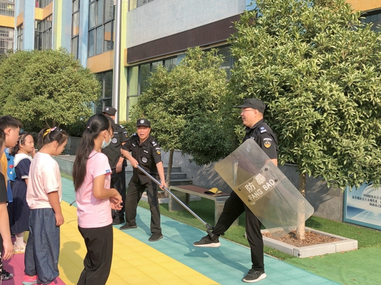 演練結束,大隊輔導員竇豫琦邀請保安人員為學生講解各個器械的名稱和用法,教育學生遇到危險時,要及時向老師和家長求助,記住報警電話110。