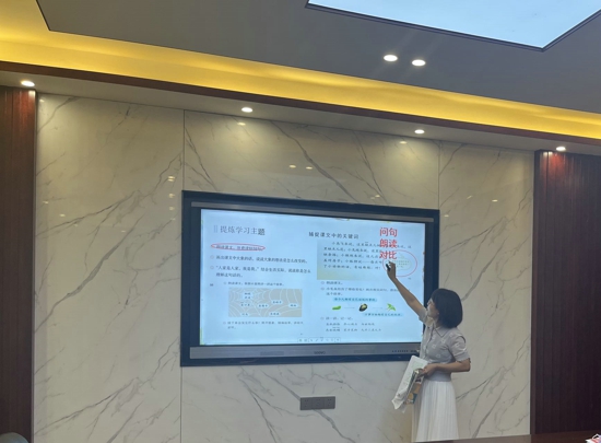 接著,二年級語文組徐曉娜老師帶來了大單元教學的案例分享,巧妙地將理論與實踐進行了勾連,向研討老師直觀展示了二年級語文組關(guān)于大單元教學的課堂教學構(gòu)思,讓大單元教學的概念通過講解清晰地深入各位老師的內(nèi)心。