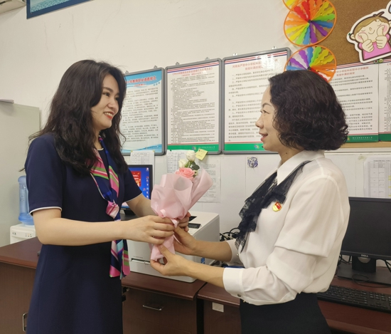 辦公室,走廊上,圖書角……外小校務(wù)班子領(lǐng)導(dǎo)將鮮花送到每位老師手中,一聲問候,一份溫暖,洋溢在校園的每一個(gè)角落,流淌在每一位教師的心中,自豪感、幸福感油然而生,教書育人的初心則更為堅(jiān)定。