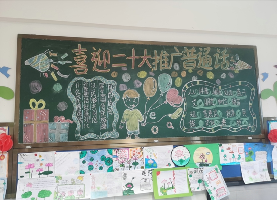 學(xué)校通過(guò)利用電子宣傳屏持續(xù)一周展示推廣普通話的宣傳標(biāo)語(yǔ),同時(shí)通過(guò)舉行主題隊(duì)會(huì)、辦推廣普通話的黑板報(bào)、張貼推廣普通話的宣傳畫(huà)、舉行演講比賽等活動(dòng)形式,營(yíng)造了良好的規(guī)范用語(yǔ)和用字氛圍。主題隊(duì)會(huì)上,各中隊(duì)輔導(dǎo)員向隊(duì)員們介紹了全國(guó)推廣普通話宣傳周的時(shí)間和由來(lái),講述了規(guī)范語(yǔ)言文字的魅力,并示范了標(biāo)準(zhǔn)發(fā)音,號(hào)召大家積極宣傳、使用普通話。隨后,各中隊(duì)又組織少先隊(duì)員座談交流學(xué)習(xí)的感悟。大家暢所欲言,少先隊(duì)員們紛紛表示,作為新時(shí)代的少先隊(duì)員,自己一定要講好普通話,寫好規(guī)范漢字,在學(xué)習(xí)和生活中積極踐行,成為普通話的優(yōu)秀宣傳員,不少隊(duì)員還捧起語(yǔ)文課本,激情澎湃地朗讀起了課文。
