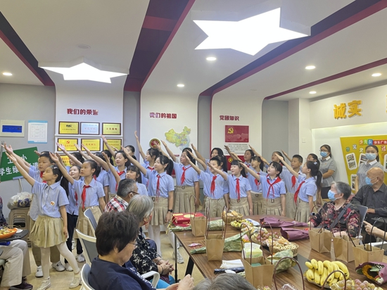 中新河南網(wǎng)10月6日電(吳勇強(qiáng))重陽吉日,秋高氣爽。9月28日上午,鄭州市金水區(qū)工人第一新村小學(xué)少先隊(duì)活動(dòng)室內(nèi)傳來朗朗笑聲和陣陣掌聲,學(xué)校全體領(lǐng)導(dǎo)班子和離退休教師歡聚一堂,歡度重陽節(jié)。
