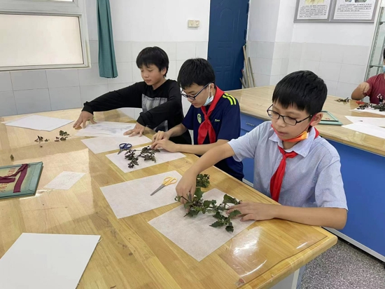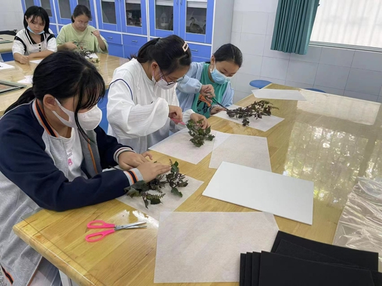 為了進(jìn)一步普及中醫(yī)藥文化,讓全校的同學(xué)都能參與到中醫(yī)文化的傳承中,在學(xué)校德育處的組織下,科學(xué)老師楊培杰帶領(lǐng)同學(xué)們又進(jìn)行了紫蘇標(biāo)本制作活動。楊老師向同學(xué)們詳細(xì)的講述著標(biāo)本的制作過程,同學(xué)們聽的非常認(rèn)真并且積極的與老師進(jìn)行互動。標(biāo)本制作開始啦,同學(xué)們小組合作,用吸水紙和紙壓板壓制植物標(biāo)本,留住植物最美姿態(tài)。小組之間還不時的探討,分享各組的優(yōu)秀做法。無論是寥寥幾片葉子還是植物擺圖,無不展現(xiàn)他們對自然的熱愛、對中醫(yī)藥文化的熱情,以及獨特的創(chuàng)造力。