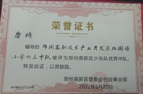 這就是鄭州高新區(qū)外國(guó)語(yǔ)小學(xué)的出彩教師——康綺。不論是班級(jí)管理、教學(xué)常規(guī)、還是年級(jí)引領(lǐng),她盡職盡責(zé),用行動(dòng)書(shū)寫(xiě)教育篇章,用熱愛(ài)滋潤(rùn)學(xué)生心田。