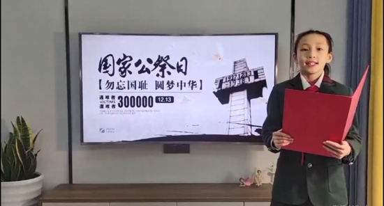 中新河南網(wǎng)12月14日電(吳勇強(qiáng))今年的12月13日是我國第九個南京大屠殺死難者國家公祭日,是所有中國人民應(yīng)當(dāng)銘記的日子。為了讓隊(duì)員們了解、銘記這段悲痛的歷史,紀(jì)念受難的同胞,培養(yǎng)愛國情懷,中原區(qū)西悅城第一小學(xué)開展了“銘記國家公祭日勿忘國恥興中華”的線上主題升旗儀式,教育隊(duì)員們?yōu)閷?shí)現(xiàn)中華民族偉大復(fù)興的中國夢而努力奮斗,時刻準(zhǔn)備著。