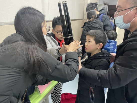 在百花藝術(shù)小學(xué),每一位新入校的學(xué)生都要經(jīng)歷一個(gè)特殊的儀式——選擇一門與自身興趣和特點(diǎn)相適切的藝術(shù)專業(yè),拜師學(xué)藝。首先,老師們耐心地向?qū)W生和家長們講解各類藝術(shù)專業(yè)和樂器的特點(diǎn),高年級(jí)學(xué)生為一年級(jí)的學(xué)弟學(xué)妹進(jìn)行了精彩展示。隨后,學(xué)生和家長一起暢游在大提琴、低音提琴、二胡、古箏、古琴、琵琶、阮、揚(yáng)琴、竹笛、嗩吶、笙、陶笛、打擊樂、單簧管等十余種藝術(shù)課程的展示臺(tái)前,迫不及待地進(jìn)行了不同樂器的初體驗(yàn),感受各種樂器的美妙旋律,最后精心地選擇一門喜歡的藝術(shù)課程,從而在未來的六年里“走班上課”,盡情暢游在藝術(shù)的海洋中。