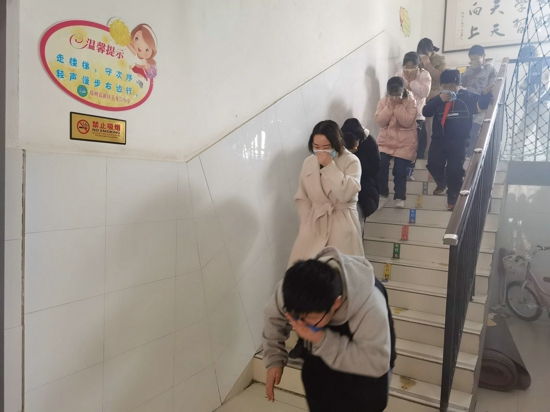 一陣急促的警報(bào)聲拉開了“師生安全疏散演練”活動(dòng)的帷幕,聽到警報(bào)聲,各位老師立即到達(dá)指定崗位,指導(dǎo)學(xué)生快速疏散,各班主任老師帶領(lǐng)學(xué)生彎著腰、貓著步,捂住口鼻,沿著學(xué)校指定樓梯口快速前進(jìn),有序撤離到學(xué)校操場(chǎng)的安全地帶,隨即各任課教師清點(diǎn)人數(shù),并層層向上匯報(bào)。
