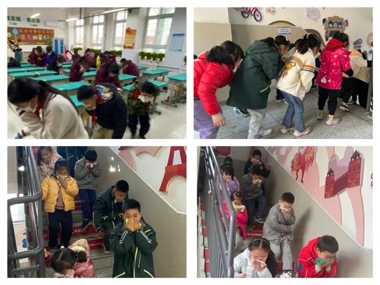活動伊始,隨著警報聲響起,全體教職工迅速響應(yīng),按照演練方案快速到達(dá)指定崗位對學(xué)生進(jìn)行引導(dǎo)和疏散。學(xué)生用濕毛巾捂住口鼻,躬身彎腰,在班主任老師的帶領(lǐng)下有序撤離到操場等安全地帶。校醫(yī)來敬慧老師提前準(zhǔn)備好藥箱在操場等候,預(yù)防學(xué)生意外受傷事故的發(fā)生。待學(xué)生到達(dá)操場后,班主任老師組織清點各班人數(shù)、檢查學(xué)生受傷情況并進(jìn)行匯報。整個過程快而不亂,忙而有序。
