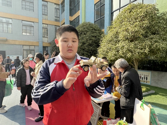 活動(dòng)中,隊(duì)員們拿出自己閑置的書籍、學(xué)習(xí)用品、自制的手工等進(jìn)行交換,以中隊(duì)為單位,進(jìn)行不同分工。在老師和家長(zhǎng)的輔助下為“中隊(duì)店鋪”起名字,標(biāo)價(jià)格,制海報(bào),成為“小小銷售員”,琳瑯滿目的商品,讓不同中隊(duì)的孩子感受到了分享的快樂。