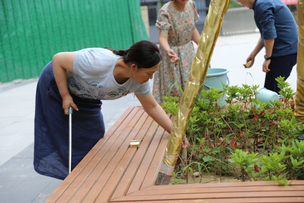 創(chuàng)新街小學(xué)團(tuán)結(jié)路校區(qū)支部書李莉娟為校園樹木澆水