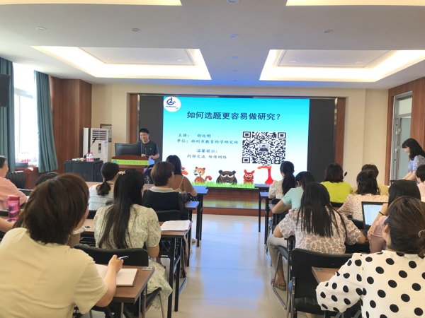 胡主任首先從“如何選題更容易做研究”說起,引導(dǎo)教師將教育教學(xué)中的疑難困惑轉(zhuǎn)化為課題研究,從描述現(xiàn)象、提出問題到分析原因,一步一步,深入探討,為教師們揭開“課題研究”的神秘面紗。接著,胡主任通過分析課題研究的經(jīng)典案例,解釋了課題研究就是日常教育教學(xué)過程中的問題解決過程。他啟發(fā)老師們,選題時(shí)應(yīng)該透過現(xiàn)象,提煉問題,才能找準(zhǔn)課題切入點(diǎn)!