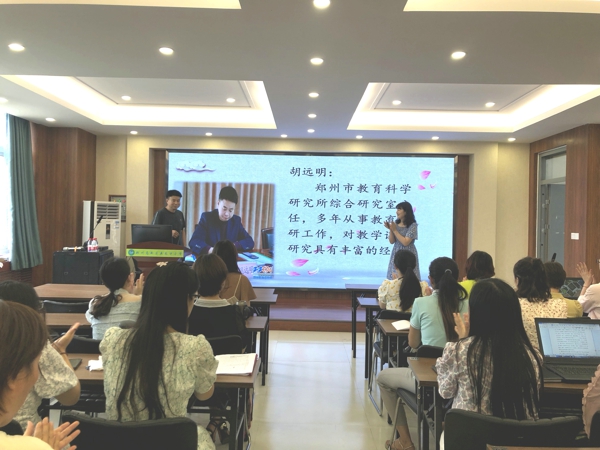 中新河南網(wǎng)6月25日電(通訊員陳秀娟)“教而不研則淺,研而不教則空”,為了提高教師隊(duì)伍的課題研究能力,促進(jìn)教學(xué)工作和教師專業(yè)化成長,6月24日下午,鄭州高新區(qū)五龍口小學(xué)開展了“教科研能力提升培訓(xùn)”活動(dòng)。本次活動(dòng)由教科室主任韓曉主持,特邀鄭州市教育科學(xué)研究所綜合研究室主任胡遠(yuǎn)明蒞臨指導(dǎo),全體教師參與了此次活動(dòng)。