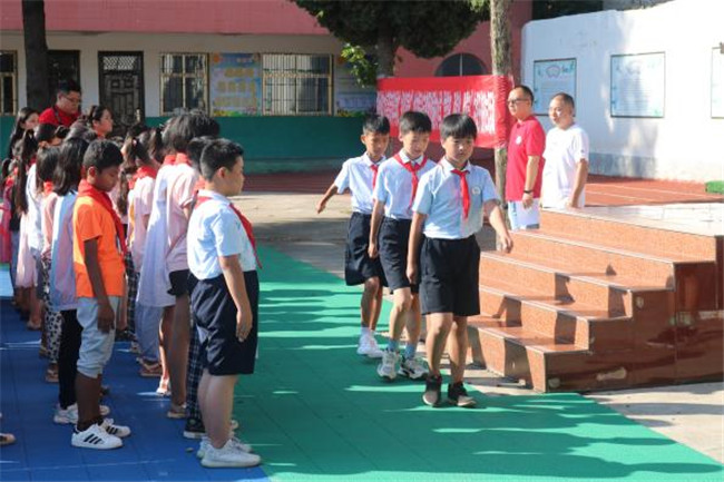 在伊川縣葛寨鎮(zhèn)沙園小學(xué),鄭州電力高等?茖W(xué)校暑期社會(huì)實(shí)踐團(tuán)開展了“學(xué)黨史 強(qiáng)信念 跟黨走”主題升旗儀式、愛國愛黨主題班會(huì)。