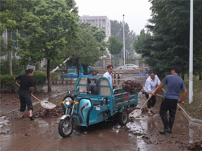 面對(duì)突如其來的重大汛情,鄭州電力高等?茖W(xué)校迅速啟動(dòng)防汛應(yīng)急響應(yīng)。主要領(lǐng)導(dǎo)坐鎮(zhèn)指揮,連夜展開應(yīng)急處置,統(tǒng)籌協(xié)調(diào)各項(xiàng)工作;后勤服務(wù)中心對(duì)全校處于低洼地帶的道路與管道進(jìn)行檢查,落實(shí)現(xiàn)場排水及清淤、相關(guān)設(shè)備斷電等措施,防止設(shè)備漏電以及人身傷害事故;同時(shí)加強(qiáng)供電設(shè)施的巡視、監(jiān)測,重點(diǎn)開展配電房內(nèi)澇及線路受災(zāi)隱患排除。